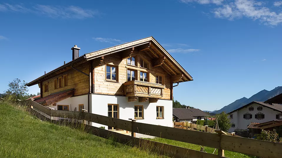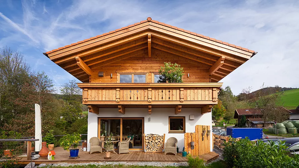 Die meisten Kombibauten von Tiroler Holzhaus entsprechen dem typischen alpenländischen Charakter.