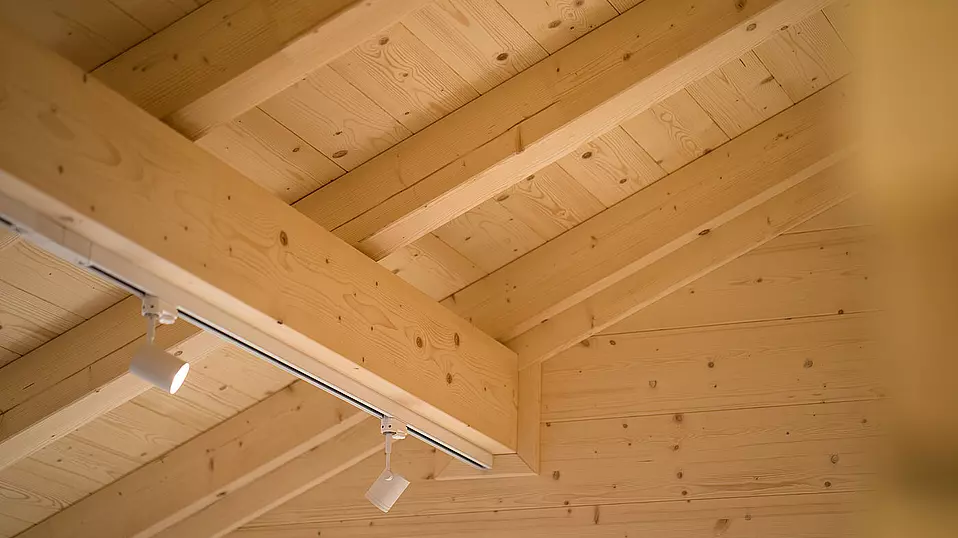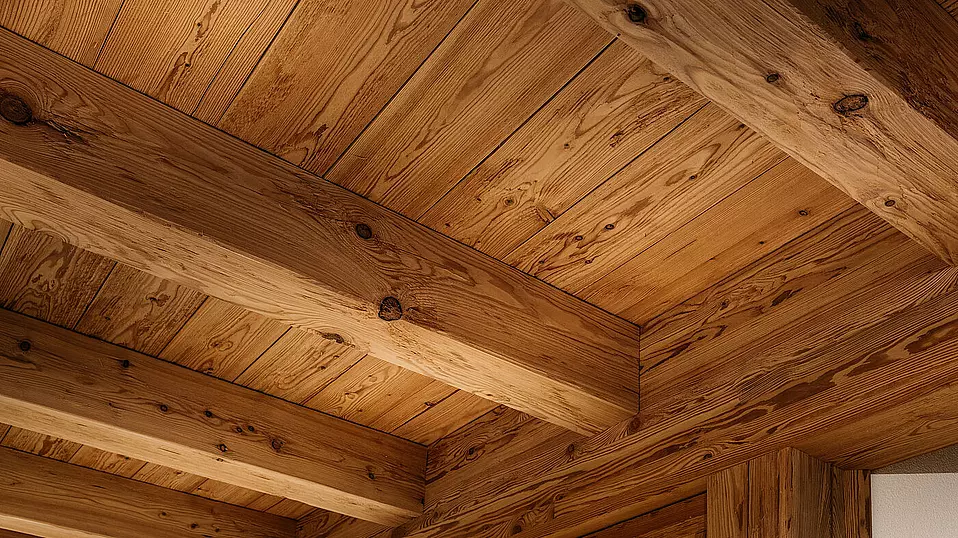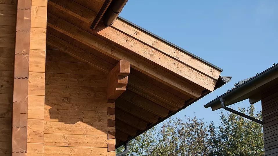 - Sichtdachstuhl mit Ziergiebel: Fichte gebürstet mit Aufdachdämmung