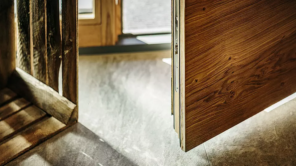 - Innentüren: in Eiche rustikal, Querfurniert, Türblatt mit Stock flächenbündig