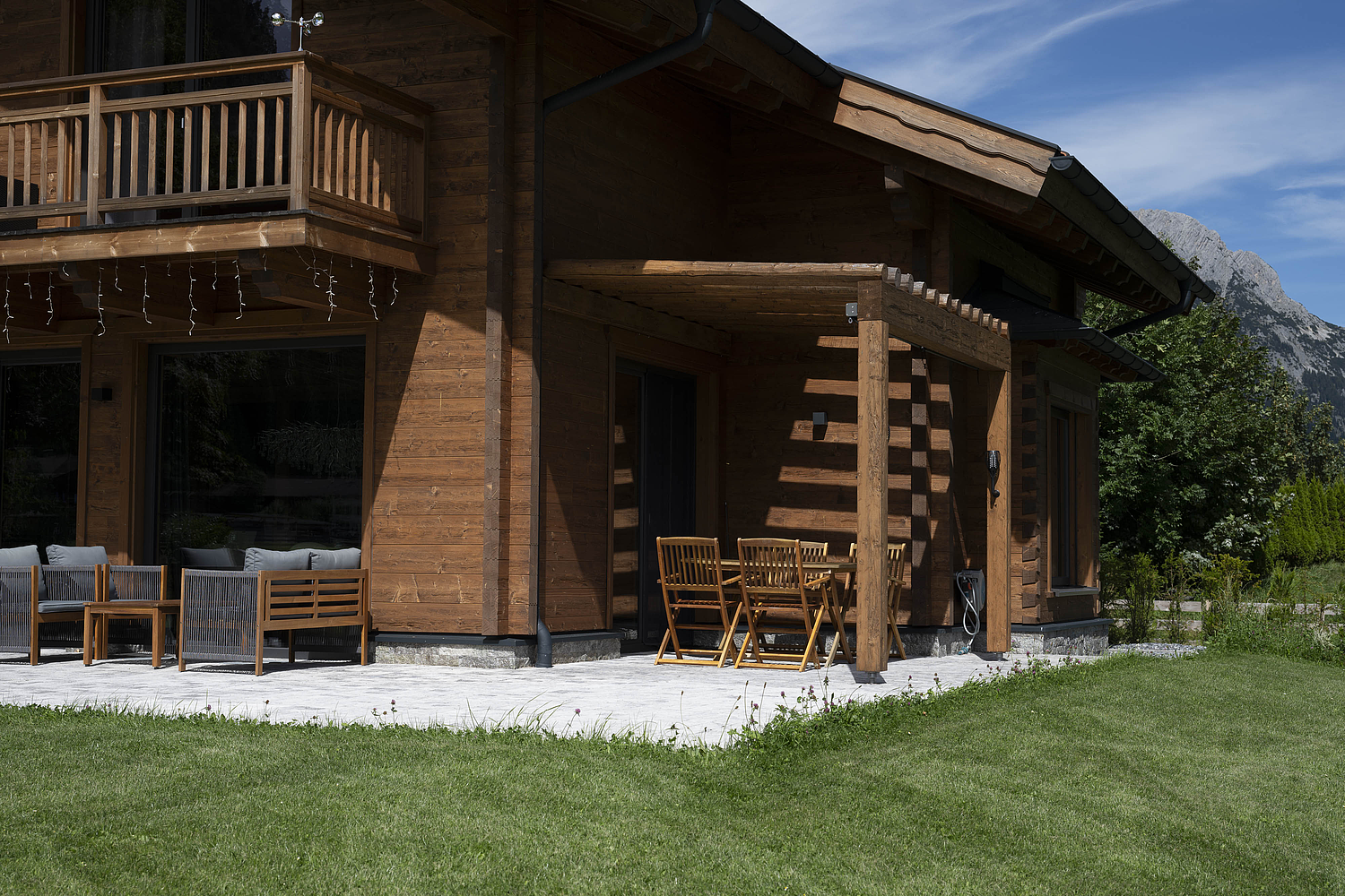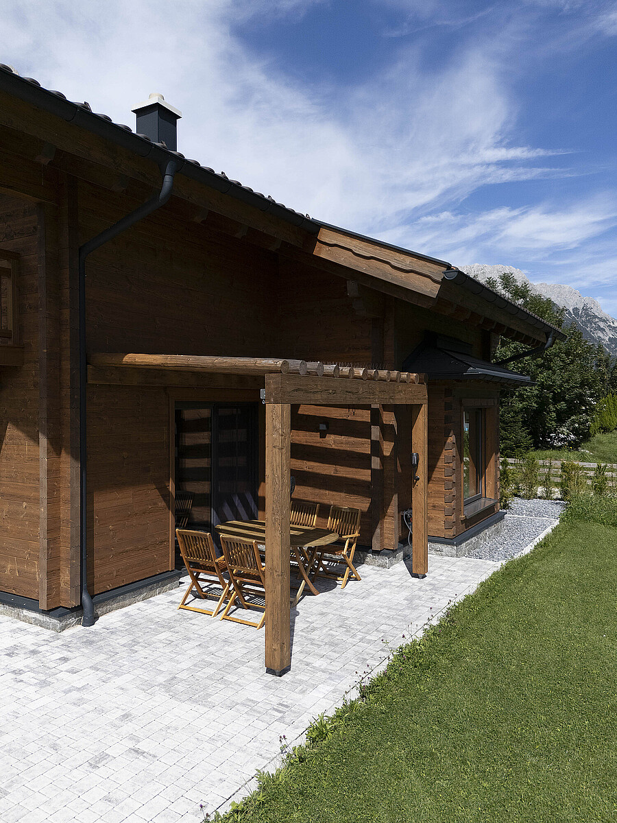 Dieses Einfamilienhaus in Blockbauweise verbindet traditionelle Holzbaukunst mit zeitgemäßem Wohnkomfort und einer besonders warmen, einladenden Ausstrahlung. Der klar proportionierte Baukörper, das klassische Dach und die großzügigen Außenflächen verleihen dem Haus eine ruhige Selbstverständlichkeit, die perfekt zur alpinen Umgebung passt. So entsteht ein Zuhause, das Geborgenheit, Beständigkeit und hochwertige Architektur auf harmonische Weise miteinander vereint.