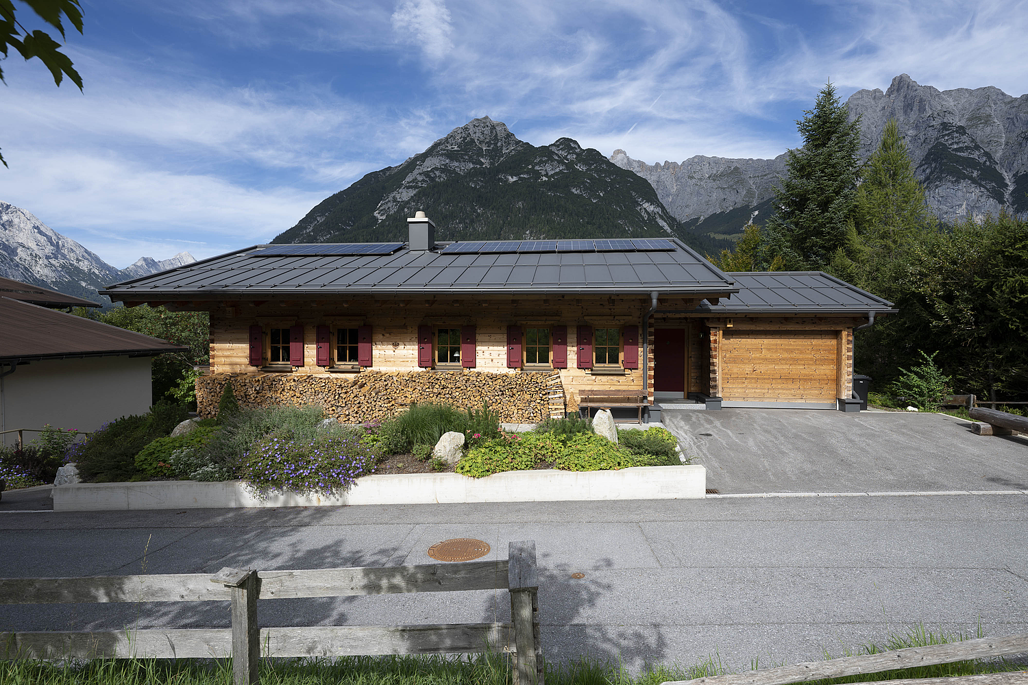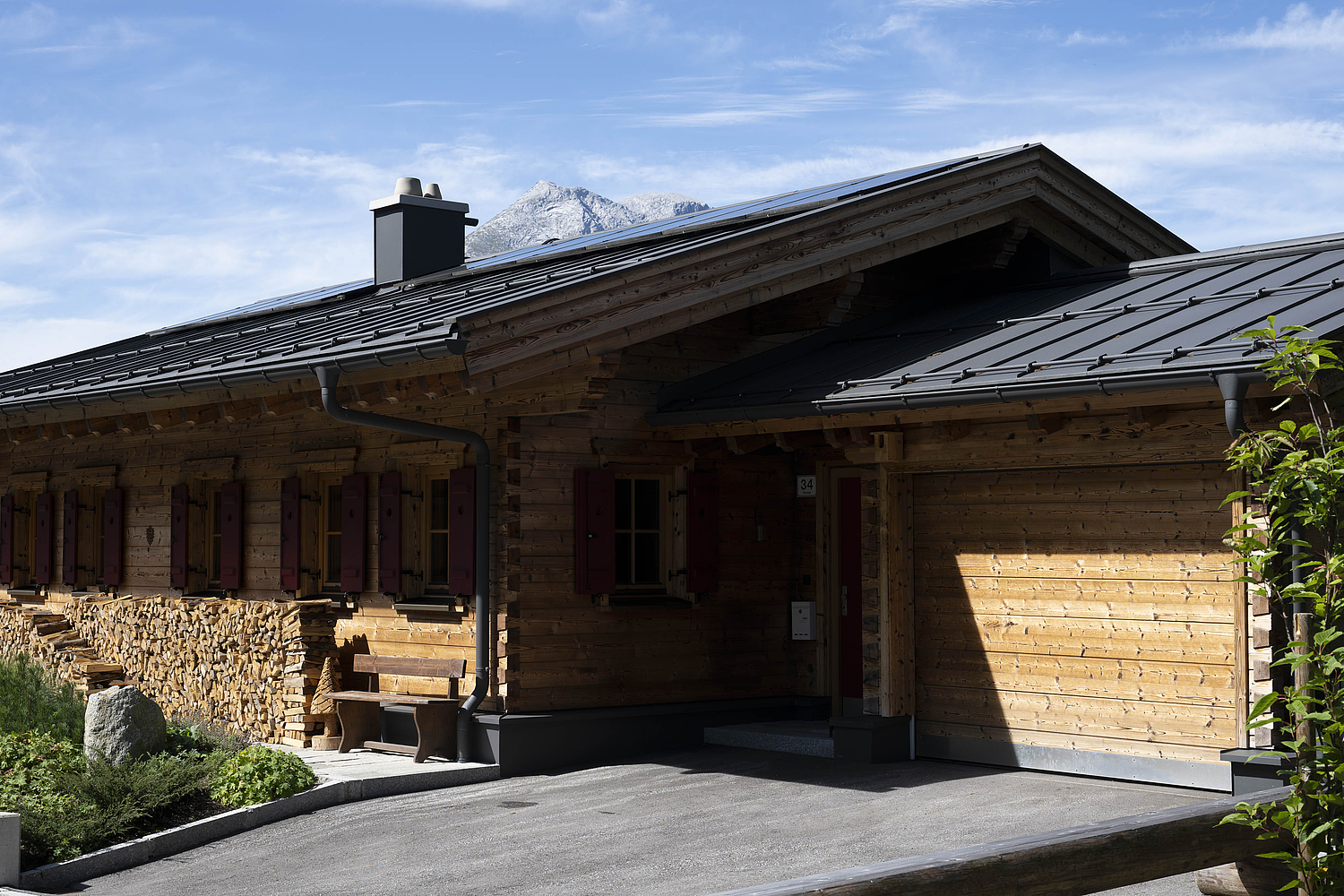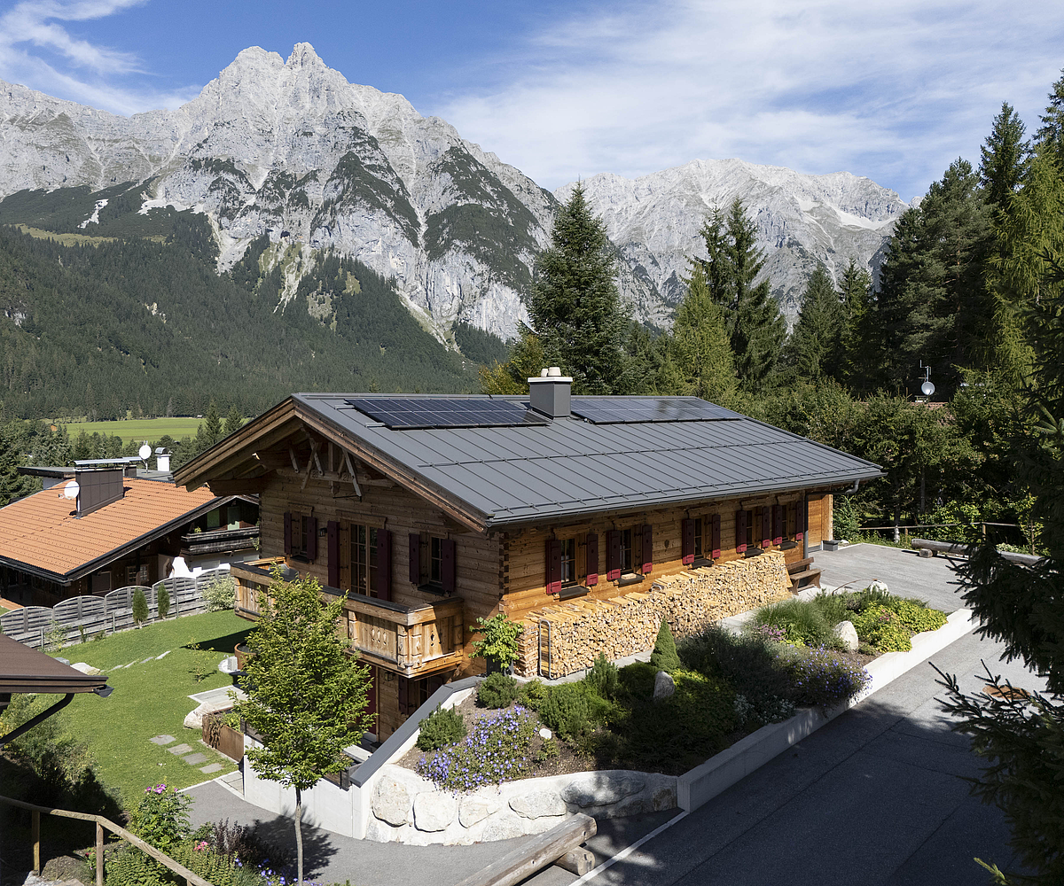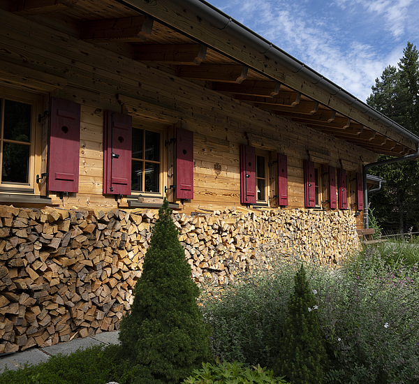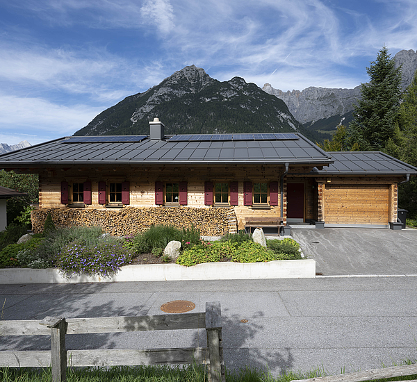 Auch konstruktiv überzeugt das Projekt durch eine durchdachte und stimmige Umsetzung. Die 120 mm starke Blockwand mit Innendämmung, die Tramdecke über dem Untergeschoss, das Blechdach sowie die Photovoltaikanlage verbinden traditionelles Bauen mit moderner Funktionalität und nachhaltiger Energieversorgung. Ergänzt durch die Garage und die präzise Einbindung in das Hanggrundstück entstand ein Wohnhaus, das handwerkliche Qualität, natürliche Ausstrahlung und langfristige Wohnqualität in besonders harmonischer Weise vereint.