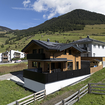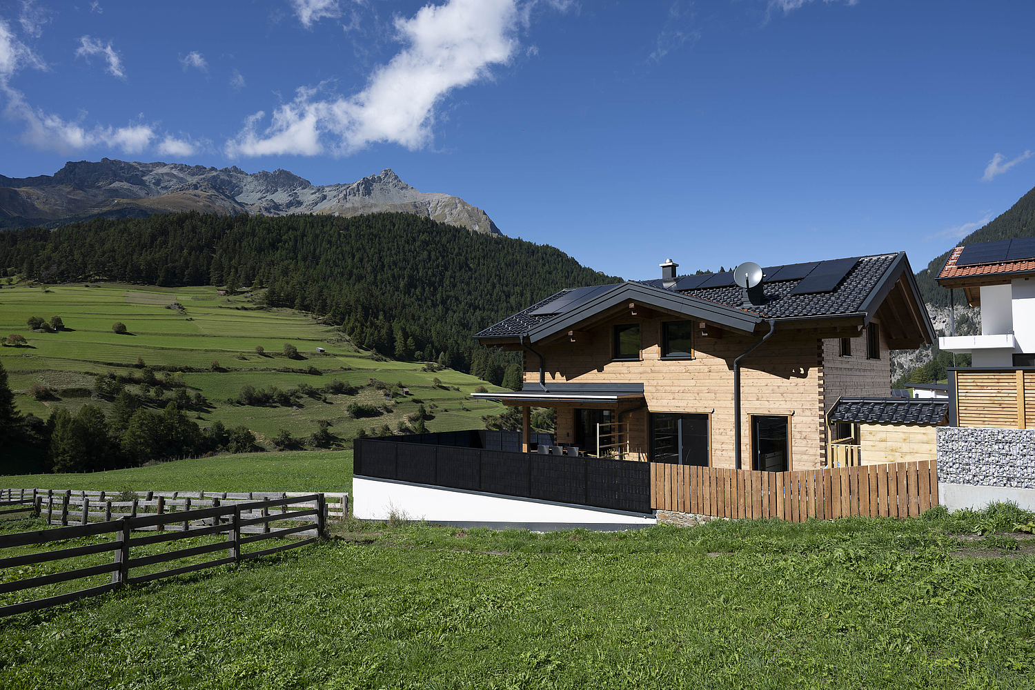 Seinen besonderen Charakter erhält das Haus durch das harmonische Zusammenspiel aus massiver Holzbauweise, klaren Linien und sorgfältig abgestimmten Proportionen. Die Außenwände in Blockbauweise mit gestrichener Fichtenoberfläche verleihen dem Gebäude eine markante, zugleich ruhige Präsenz, während im Innenbereich die naturbelassene Fichte für eine warme, authentische Wohnatmosphäre sorgt. Gerade diese Verbindung aus klarer Architektur und ehrlicher Materialität macht das Haus so besonders: Es wirkt modern, ohne seine Natürlichkeit zu verlieren, und hochwertig, ohne aufgesetzt zu erscheinen.