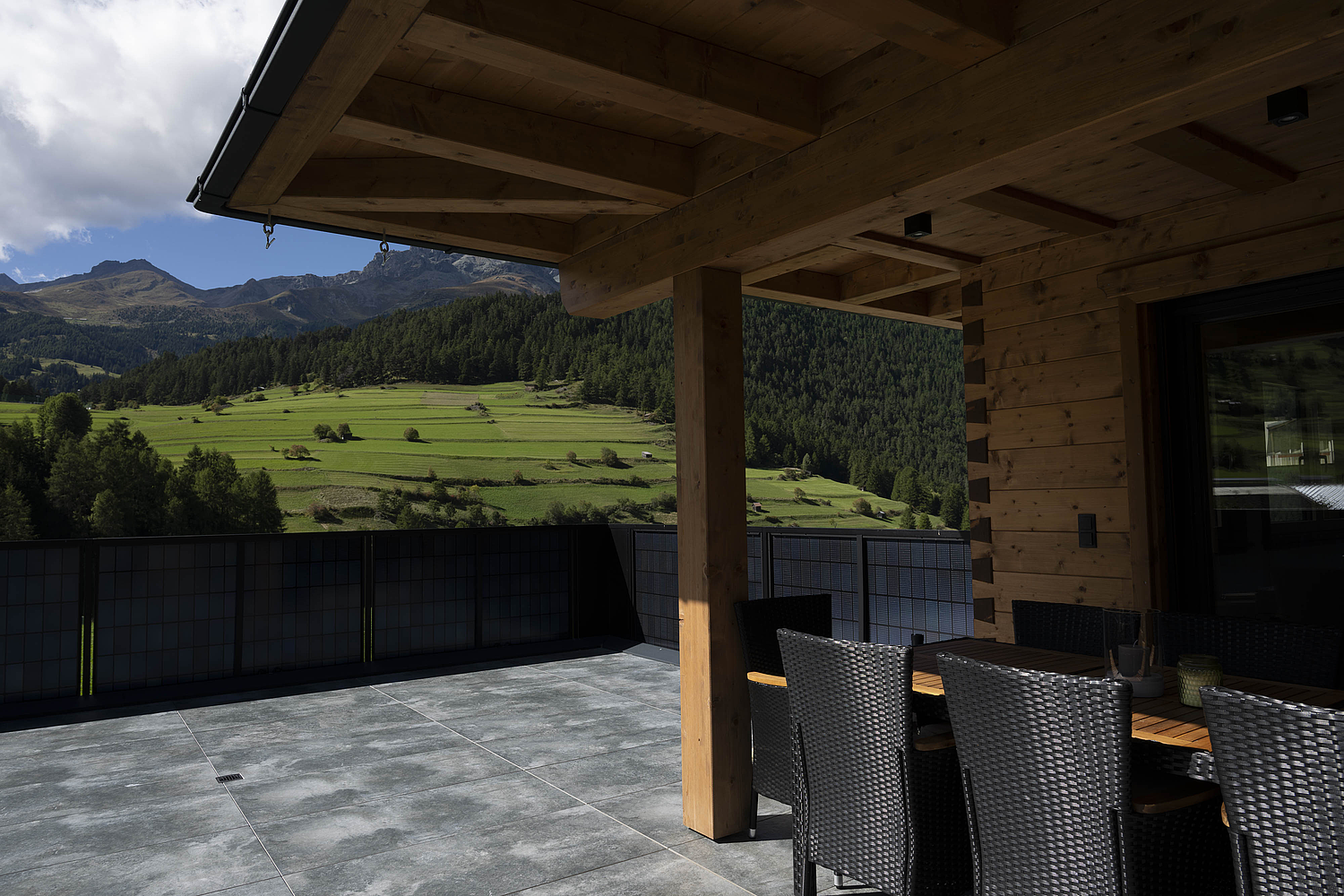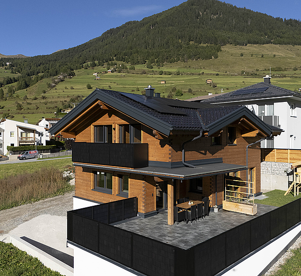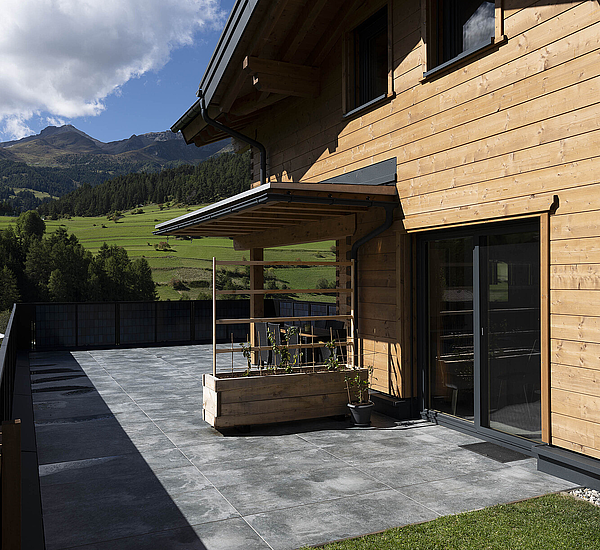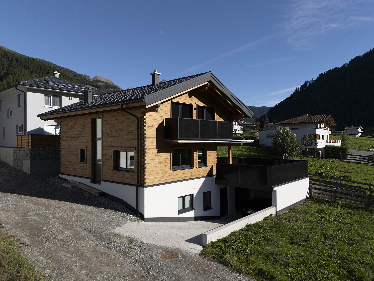 Auch konstruktiv zeigt das Projekt die Stärke eines zeitgemäß interpretierten Blockhauses. Die 120 mm starke Außenwand mit Innendämmung verbindet traditionelle Bauweise mit modernen Anforderungen an Komfort und Energieeffizienz. Das Ziegeldach fügt sich stimmig in die Gesamtarchitektur ein und unterstreicht den wertigen, dauerhaft angelegten Charakter des Hauses. So entstand ein Einfamilienhaus, das natürliche Materialien, handwerkliche Qualität und eine klare architektonische Haltung zu einem Zuhause mit echter Beständigkeit zusammenführt.