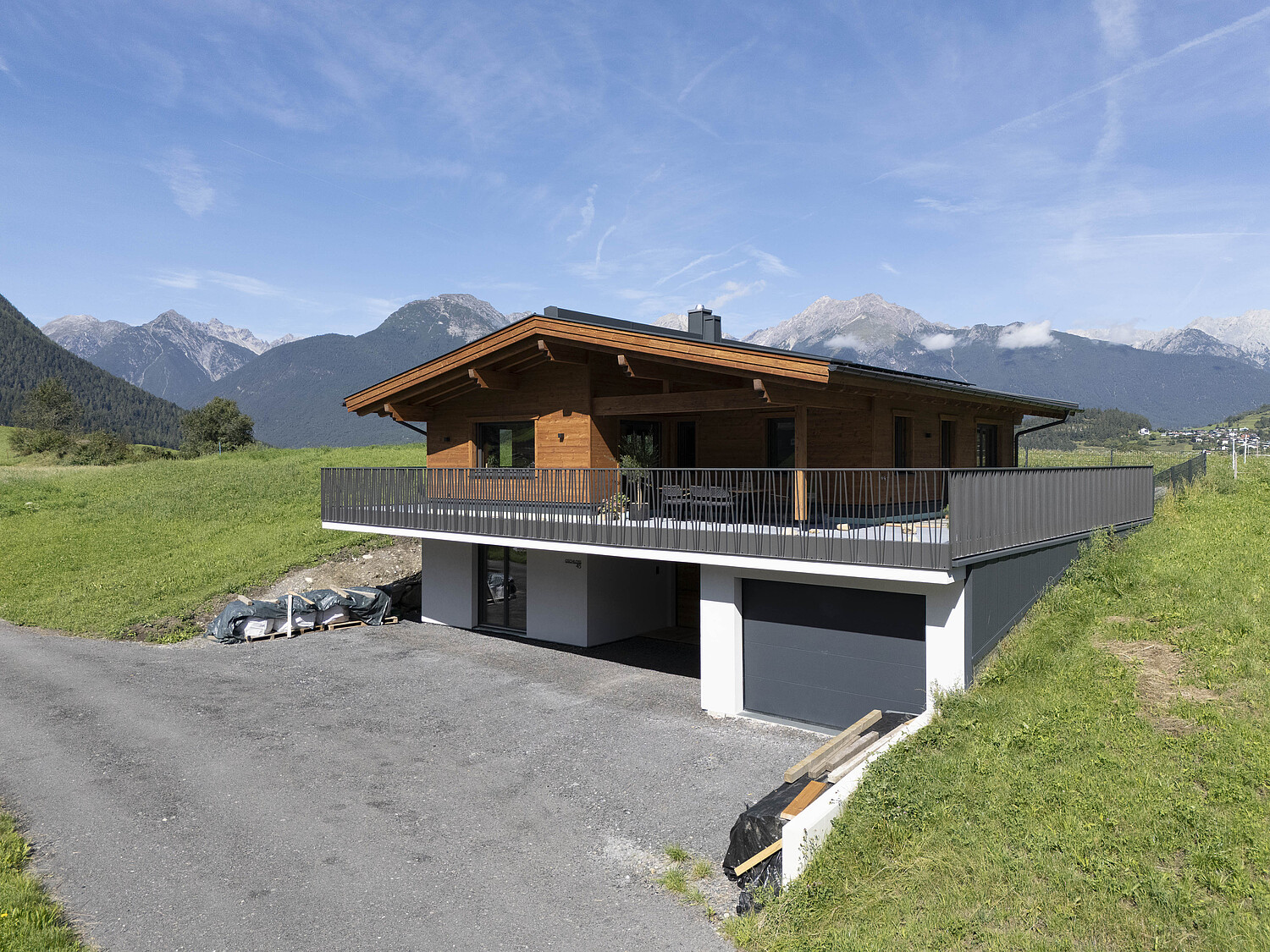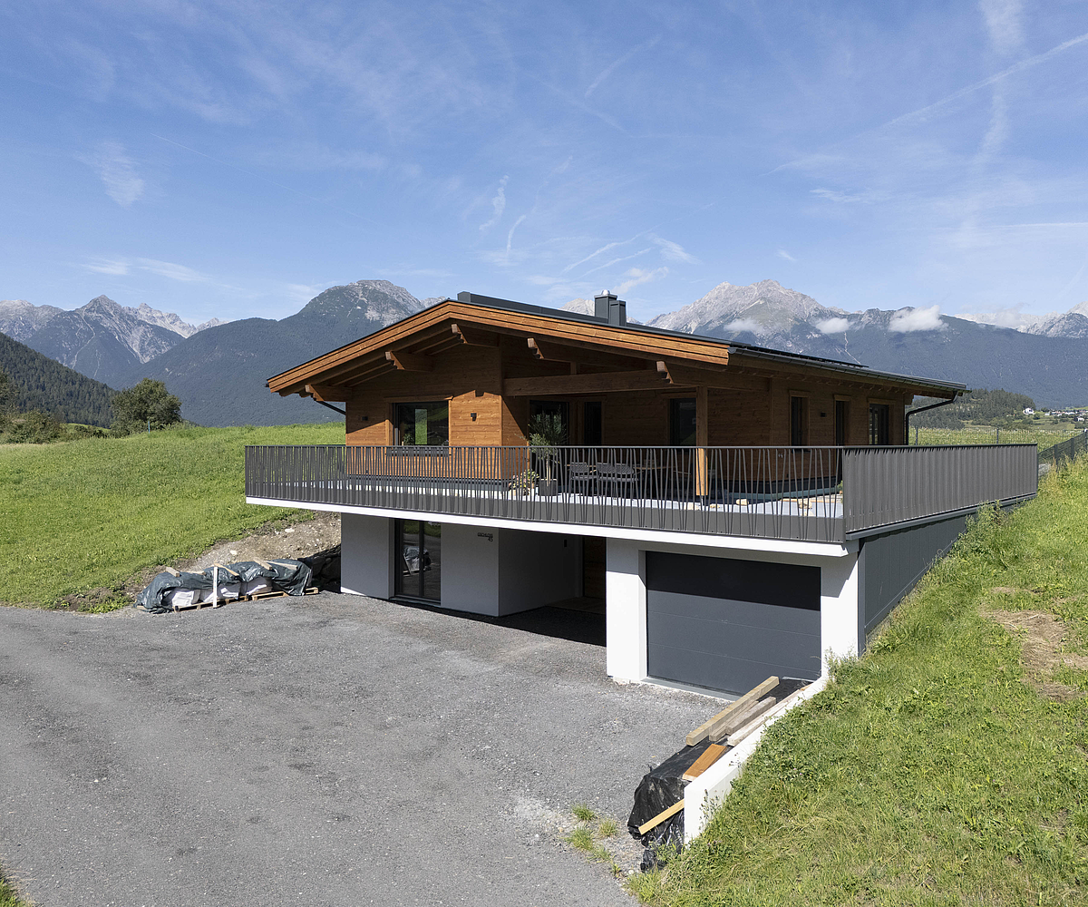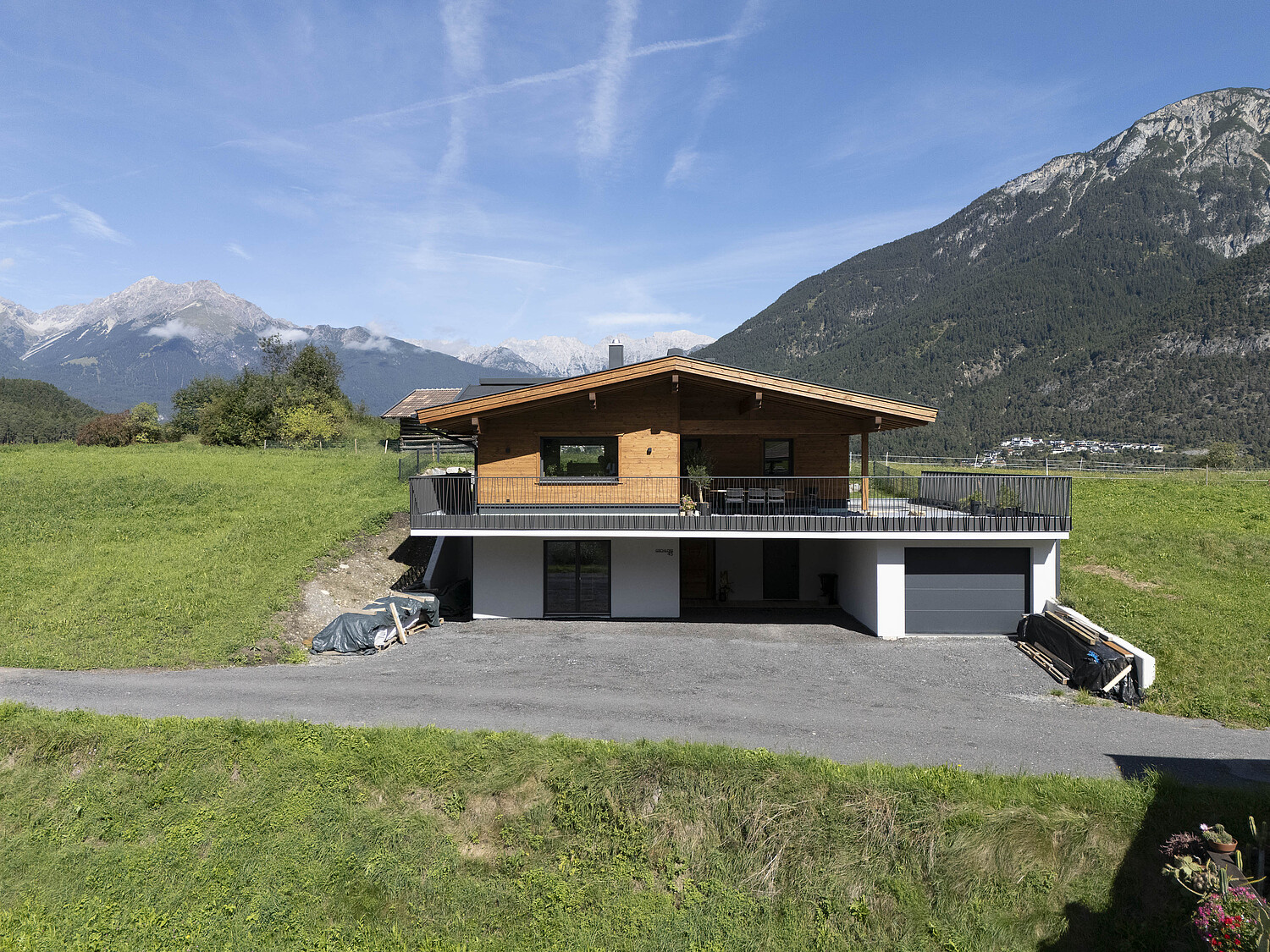 Auch konstruktiv ist das Projekt präzise auf Grundstück und Nutzung abgestimmt. Das Untergeschoss in Stahlbetonbauweise nimmt die leichte Hanglage souverän auf und integriert die Garage funktional in das Gesamtbild. Darüber entfaltet die Riegelbauweise ihre Stärken in Form von Flexibilität, Präzision und einem angenehmen Wohnklima. Mit Photovoltaikanlage am Dach und einer durchdachten, nachhaltigen Bauweise steht dieses Haus für eine moderne Form des Wohnens, die architektonische Klarheit, natürliche Materialien und langfristige Lebensqualität überzeugend zusammenführt.