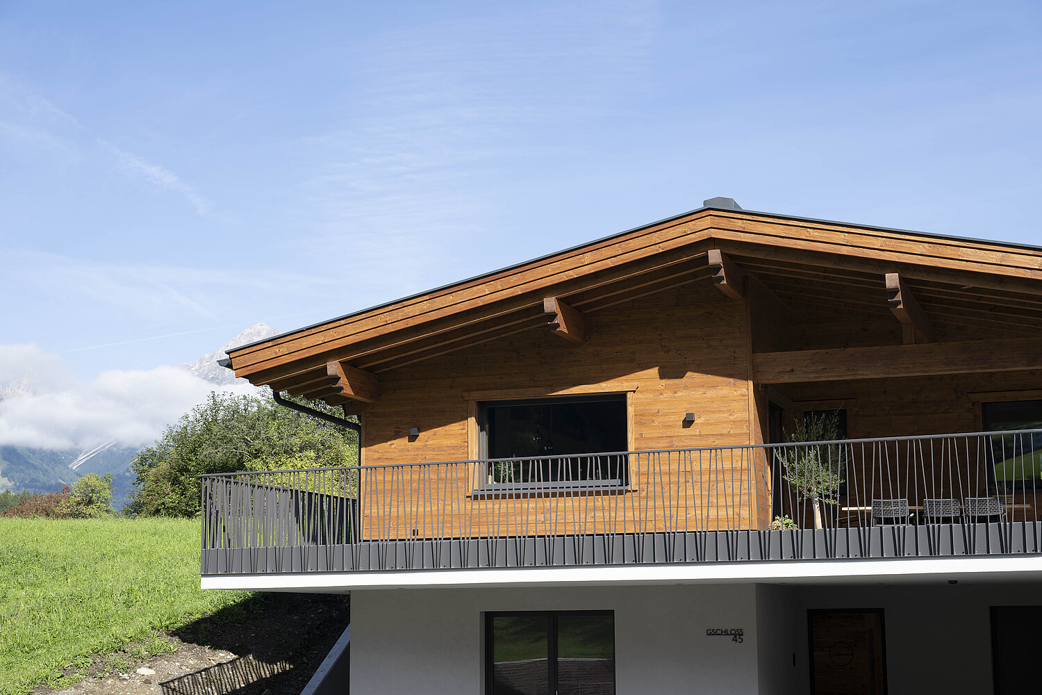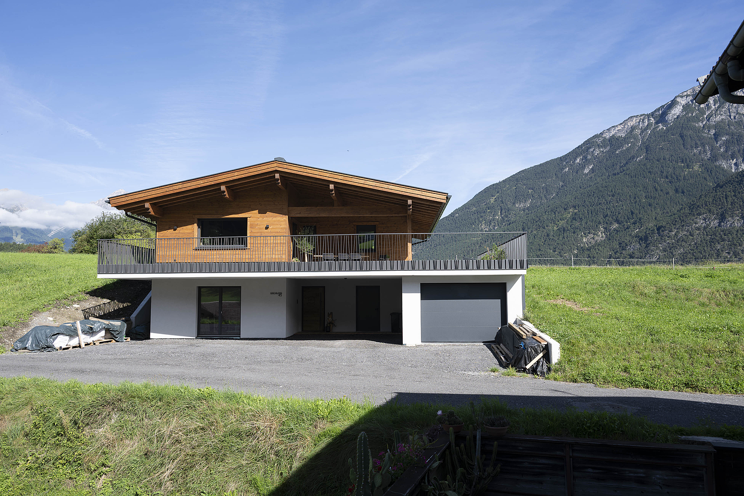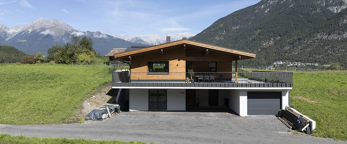 Auch konstruktiv ist das Projekt präzise auf Grundstück und Nutzung abgestimmt. Das Untergeschoss in Stahlbetonbauweise nimmt die leichte Hanglage souverän auf und integriert die Garage funktional in das Gesamtbild. Darüber entfaltet die Riegelbauweise ihre Stärken in Form von Flexibilität, Präzision und einem angenehmen Wohnklima. Mit Photovoltaikanlage am Dach und einer durchdachten, nachhaltigen Bauweise steht dieses Haus für eine moderne Form des Wohnens, die architektonische Klarheit, natürliche Materialien und langfristige Lebensqualität überzeugend zusammenführt.