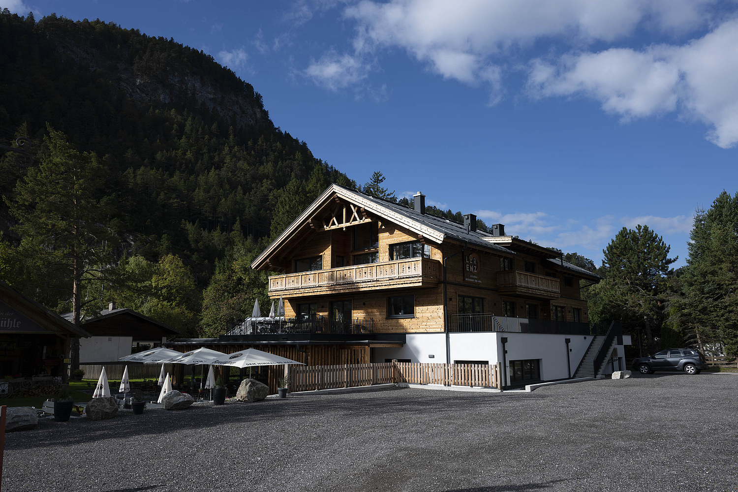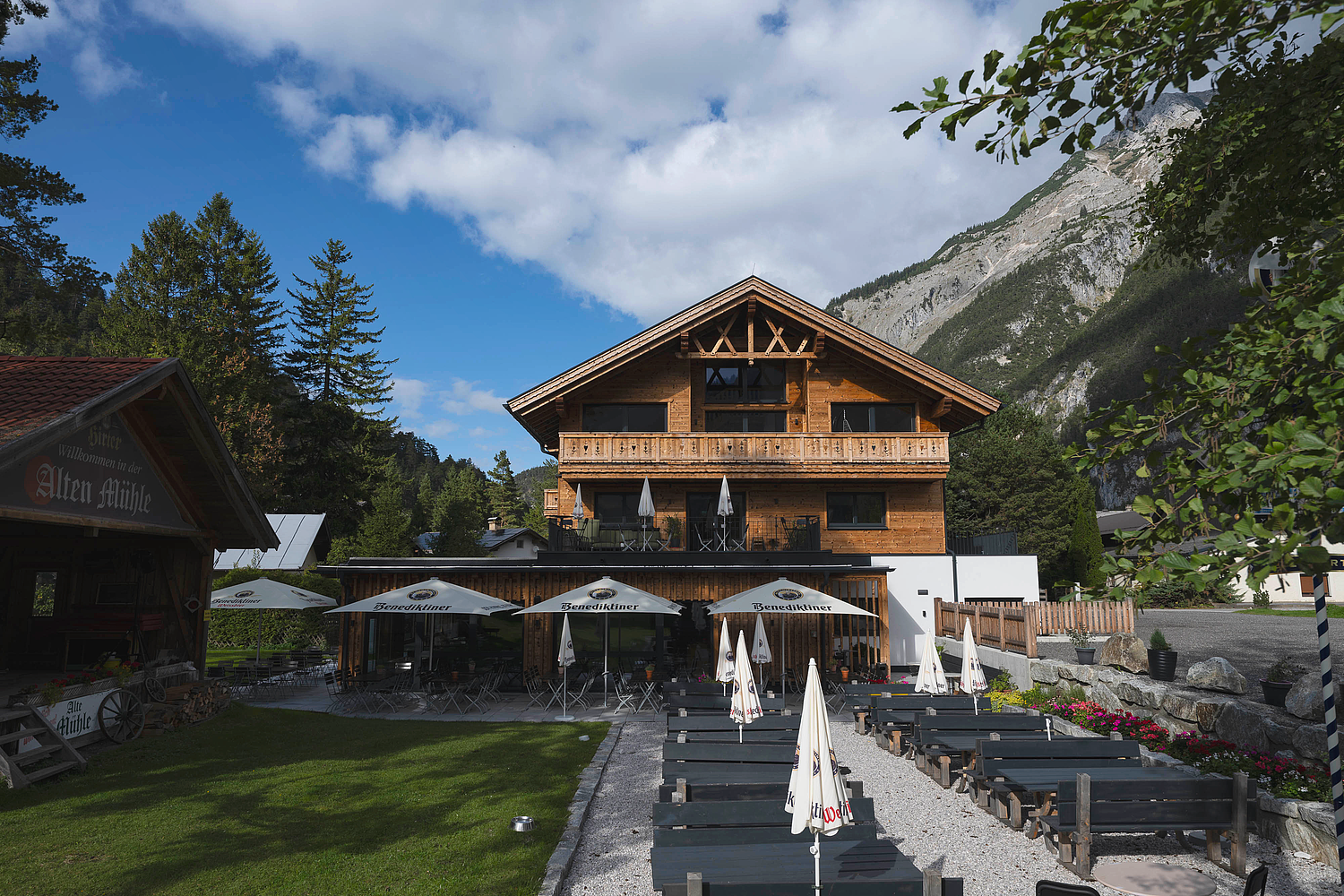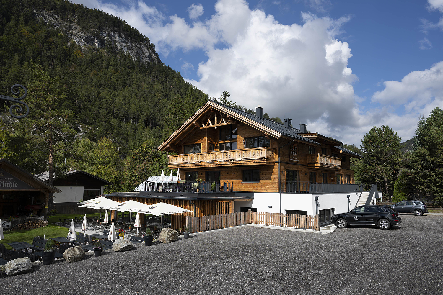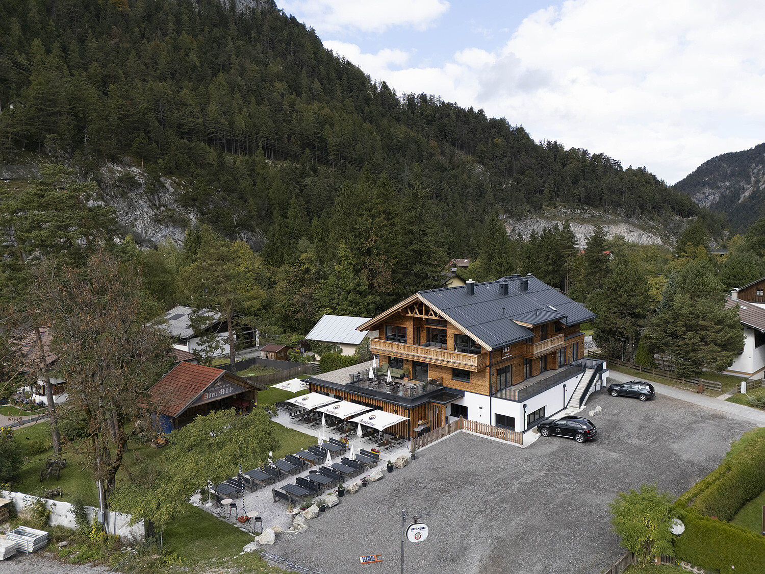 Mit der Alten Mühle entstand 2024 ein Projekt, das Tradition, Gastlichkeit und moderne Holzarchitektur auf besondere Weise zusammenführt. Aus dem Umbau eines bestehenden Gebäudes entwickelte sich – bis auf wenige erhaltene Kellermauern – nahezu ein Neubau mit völlig neuer Qualität und Ausstrahlung. Heute vereint das Haus Restaurant, Tagungs- und Seminarräume sowie Appartements unter einem Dach und schafft damit einen Ort, der sowohl architektonisch als auch funktional überzeugt.