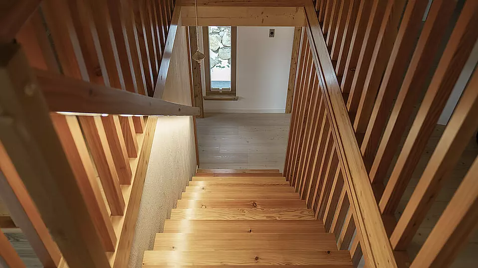 Massivholzdielen oder Parkett aus heimischen Hölzern wie Eiche, Lärche oder Zirbe passen besonders gut – sie harmonieren mit dem Charakter des Hauses.