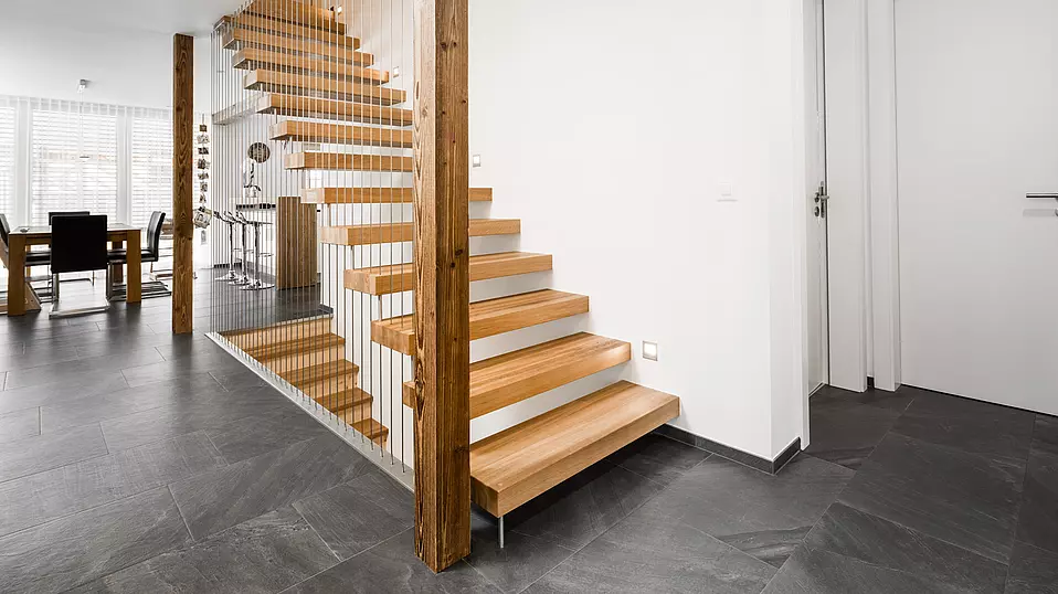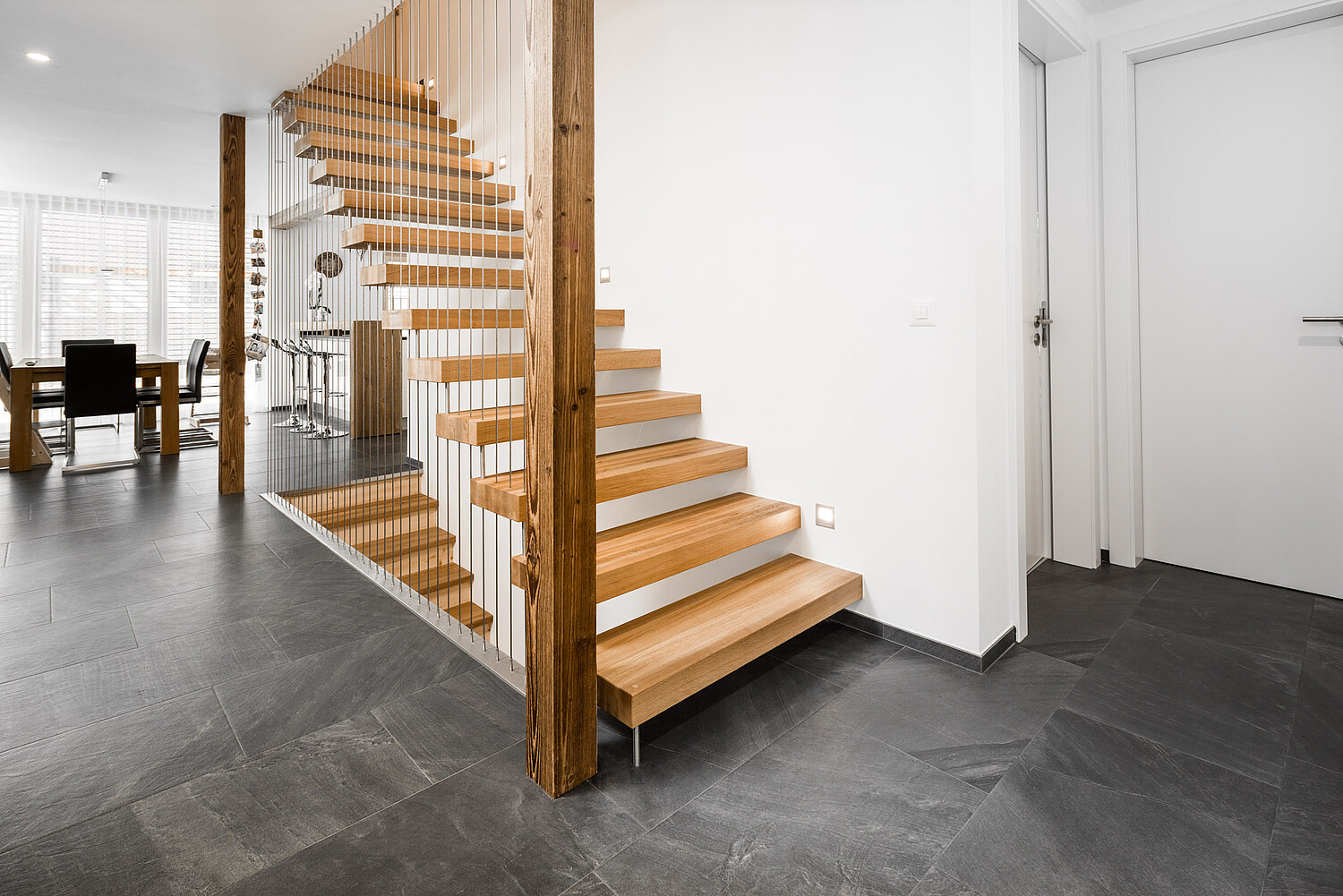 - Naturstein oder Tonfliesen: Robust und edel – vor allem in Eingangsbereichen oder Küchen eine ideale Ergänzung.
