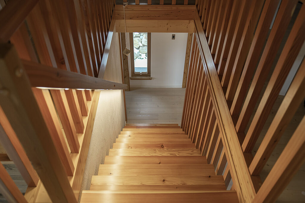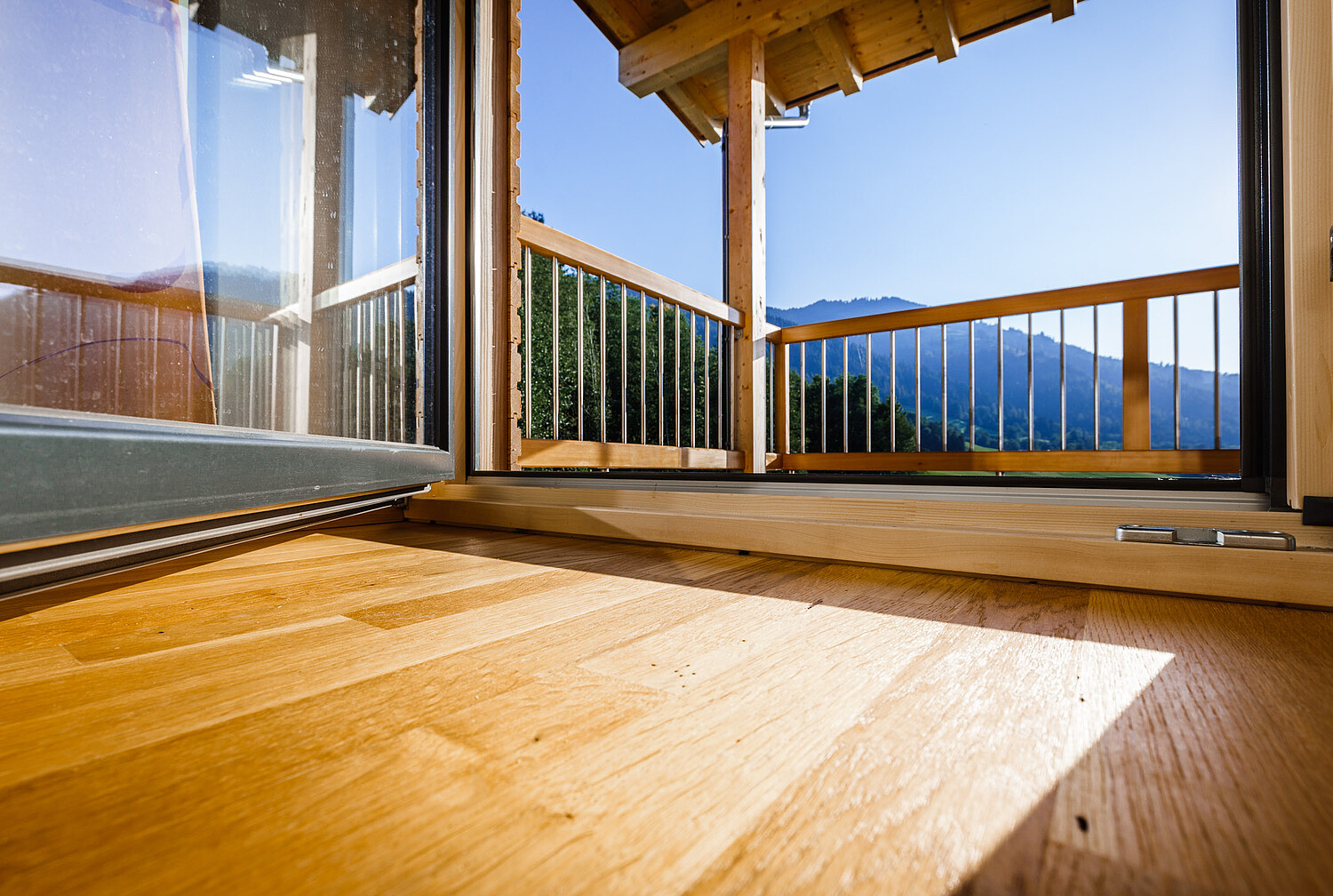 Auch der Bodenbelag trägt zur Gesamtbilanz eines Hauses bei. Wer regional produzierte, zertifizierte Materialien verwendet und auf Klebstoffe oder Kunststoff verzichtet, lebt den nachhaltigen Anspruch des Holzhauses bis ins Detail.
