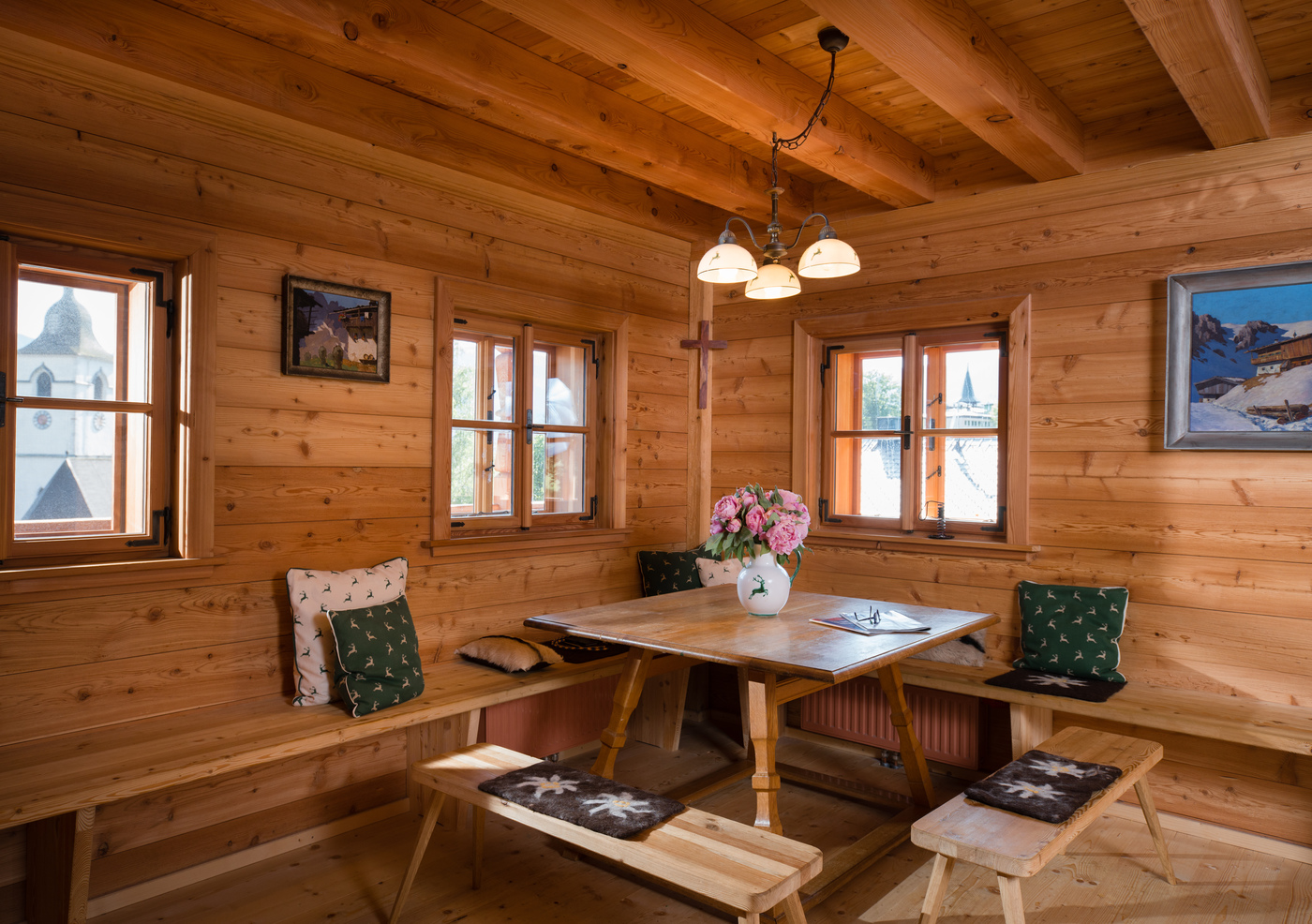 Wenn draußen Stille liegt, entsteht drinnen eine Art geschützter Zauber. Holz interagiert mit Licht, Wärme und Klang. Jeder Raum bekommt Tiefe, jeder Moment ein bisschen mehr Bedeutung.